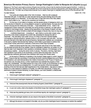 American Revolution Primary Source: George Washington War Letter to Lafayette